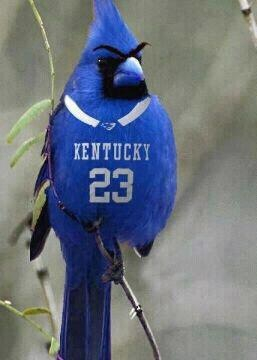 A bit of background…the University of KY school mascot is a bobcat (wildcat…locally known) and the school color is royal blue and white. The University of Louisville mascot is a Northern Cardinal (however, I doubt many fans really know that…”just a red cardinal…the Kentucky State bird) and the school colors are red and white. There is a strong cross state basketball rivalry between the schools. The University of Kentucky beat the University of Louisville this past season and went on to win the NCAA men’s basketball tournament. Anyway, after the U of L loss someone sent me this photo of the Louisville cardinal that had turned to “wildcat” blue. So…that’s the back-story to this blue cardinal…